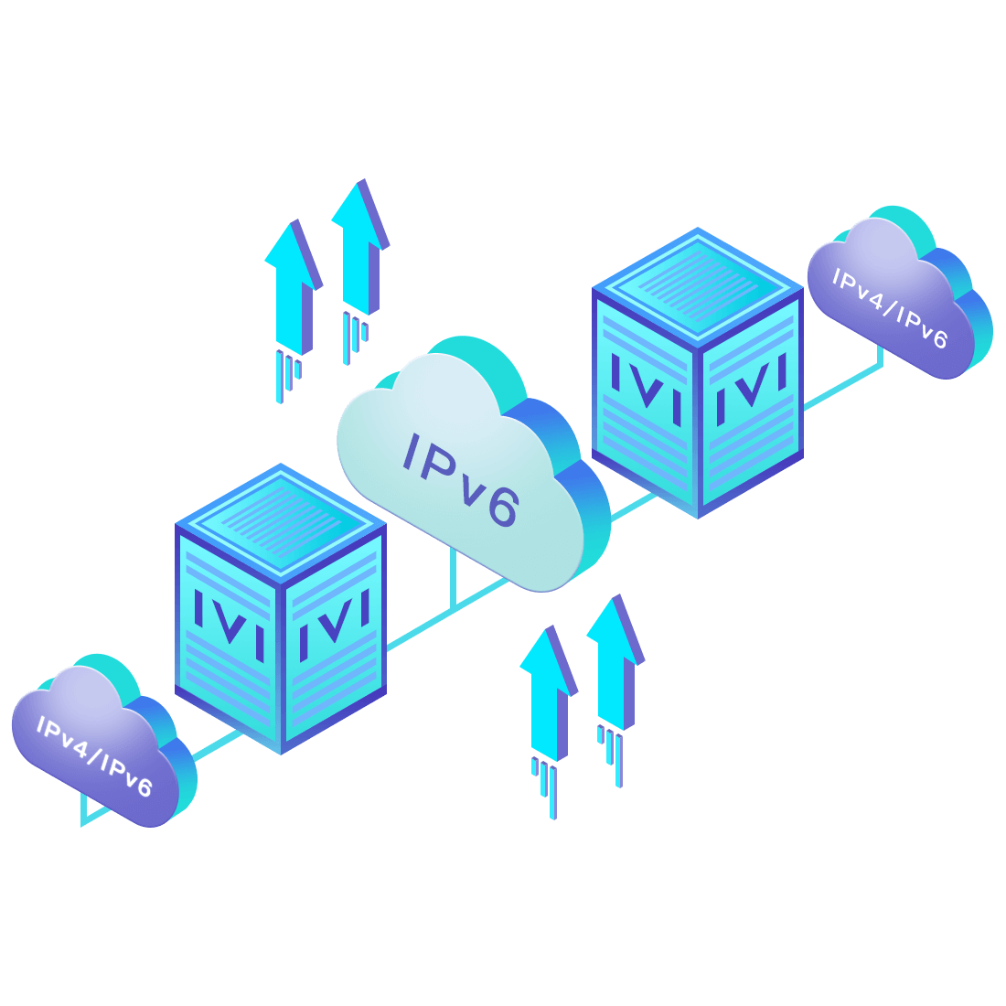 對正在進行IPv6整體升級規劃的運營商,應用IPv6升級方案2.5,通過IVI無狀態翻譯技術和純IPv6接入網絡,為雙??蛻舳撕碗p棧服務器提供連通服務。